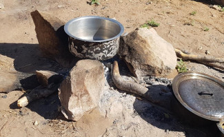 In Mavande, wie überall auf dem Lande in Tansania, wird ganz überwiegend auf offenem Feuer gekocht: 3 große Steine stehen im Dreieck und halten den Topf, in die 3 Lücken zwischen den Steinen werden dünne, trockene Stämme geschoben, welche am vorderen Ende, also unter dem Topf, brennen. Deshalb der Name "3-Steine Herd".